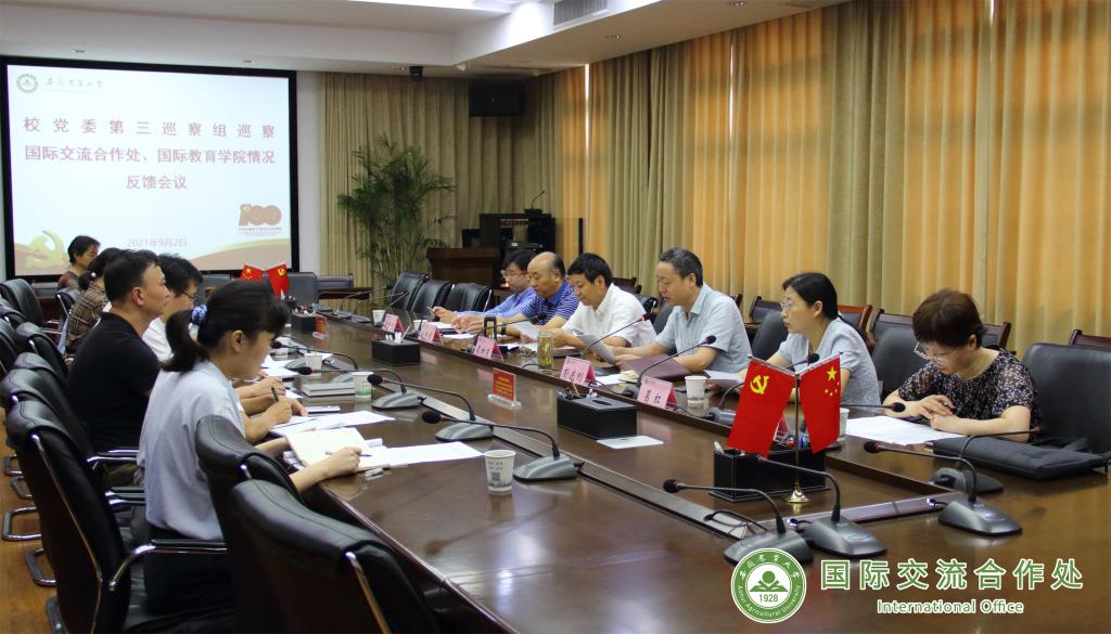 校党委第三巡察组向国际合作处(港澳台事务办公室)、国际教育学院反馈巡察情况