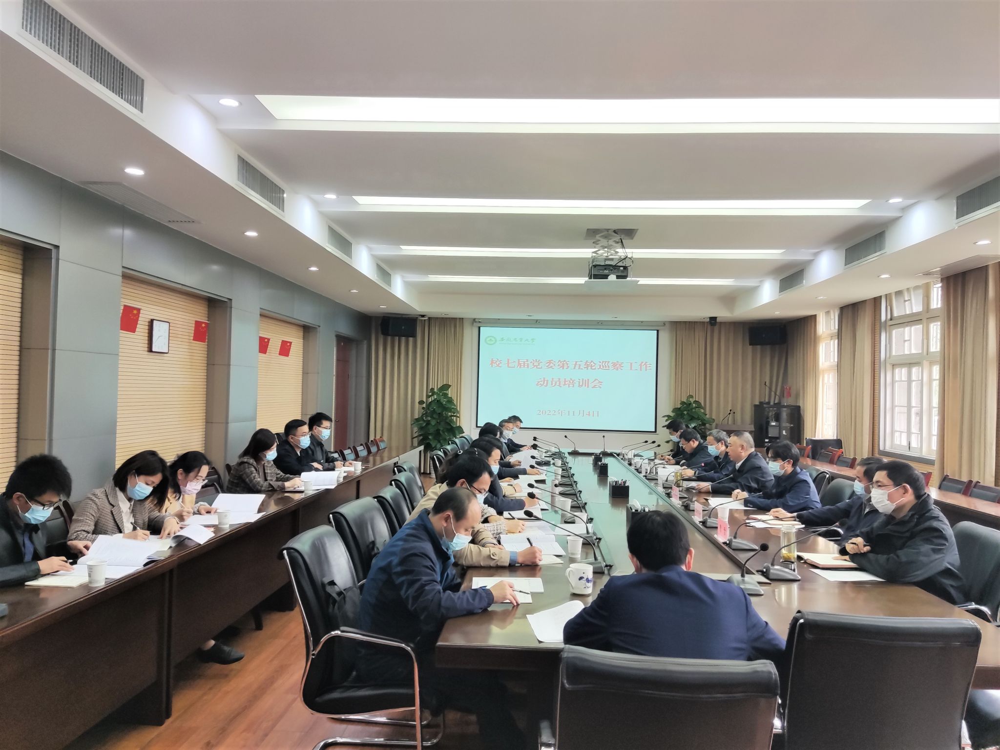本网讯 11月4日,学校在勤政楼第三会议室召开七届党委第五轮巡察工作动员培训会,校党委常委、纪委书记、监察专员、巡察工作领导小组副组长陈文兵出席并作动员讲话。七届党委第五轮巡察组全体成员参加会议。