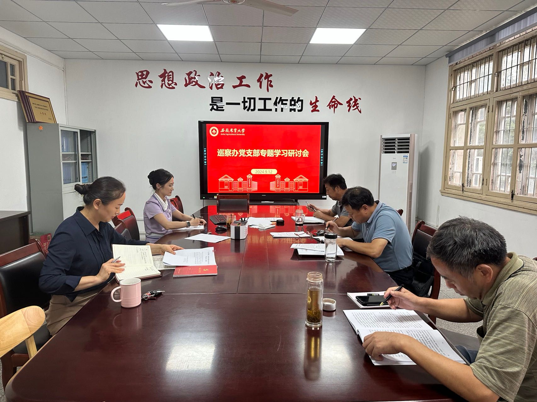 本网讯 9月12日下午,巡察办党支部集中学习党的二十届三中全会精神,党支部书记邹兴业主持会议并以《提升“七种能力”做政治过硬本领高强的新时代巡察干部》为支部党员讲专题党课,支部全体人员参加学习会。